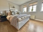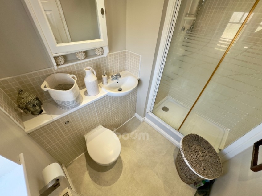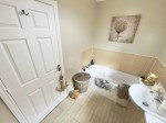 The upper floor comprises four spacious bedrooms and three additional bathrooms. Each bedroom offers generous proportions and is decorated in light, neutral tones. Bedrooms One and Two both feature en-suite shower rooms and built-in storage. Bedroom four is currently used as a home office but could easily serve as a comfortable bedroom. The modern family bathroom includes a WC, wash hand basin, and a relaxing spa bathtub.